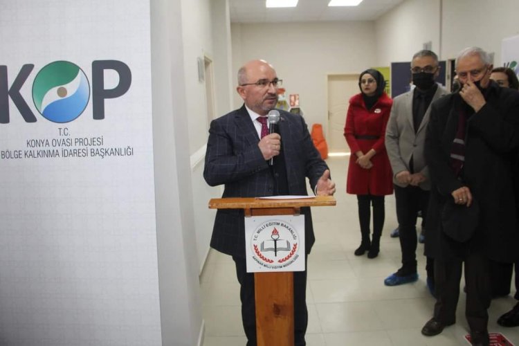İlçe Milli Eğitim Müdürlüğümüzce yürütülen ve tamamlanarak açılışı gerçekleştirilen Akpınar KOP Fen Bilim ve Deney Kütüphanesi Projesinin açılışı gerçekleştirildi dedi.